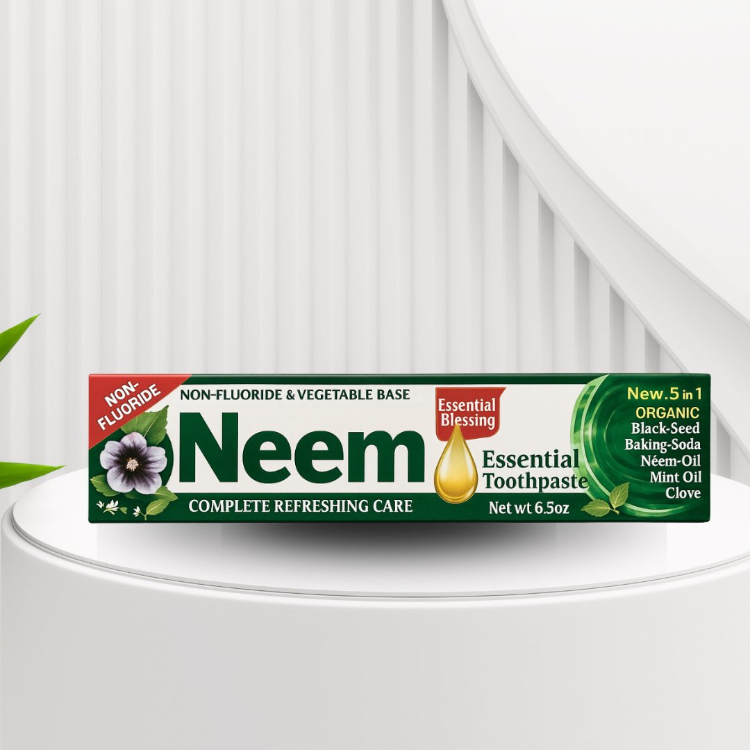 – Infused with Neem Extract, Black Seed, Baking Soda, Mint Oil, and Clove. This non-fluoride, vegetable-based formula gently whitens, freshens breath, and supports healthy gums with every brush.